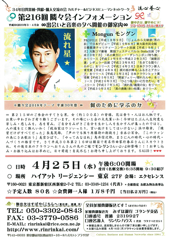 4月10日㈪  おうりん会ディナーショーゲスト出演