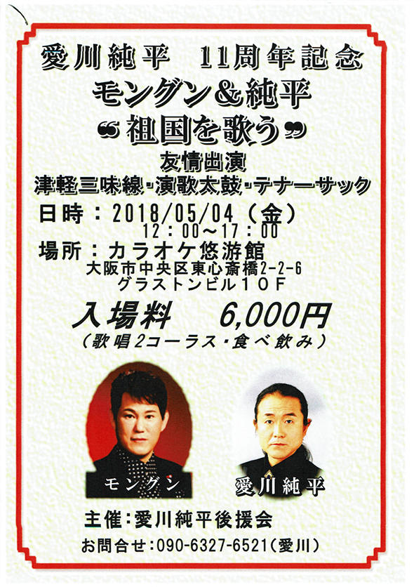 山本譲二さん、北川かつみさんMC、ゲスト 福田みのるさん、モングン