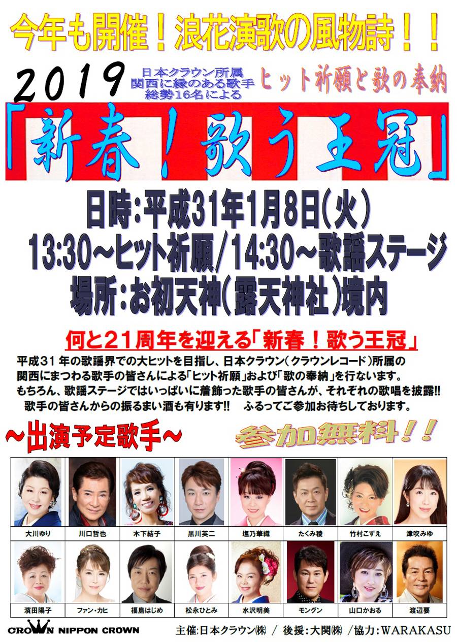 1月13日日本クラウン「新春!歌う王冠」 13:30~ヒット祈願 14:30~歌謡ステージ